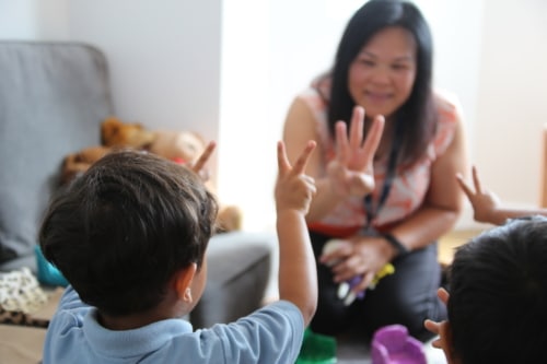 In the early stages the emphasis is on enjoyment and communication, with lots of the learning being done through songs and mime.