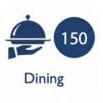• 150 people can be accommodated in a dining-style setup.